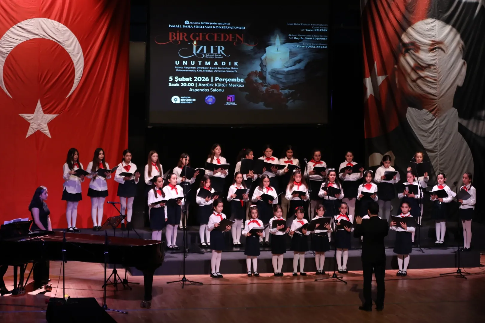 Antalya Büyükşehir Belediyesi İsmail Baha Sürelsan Konservatuvarı Çok Sesli Çocuk Korosu, 6 Şubat 2023’te Türkiye’yi derinden sarsan deprem felaketinde yaşamını yitirenleri özel bir konser ile andı.