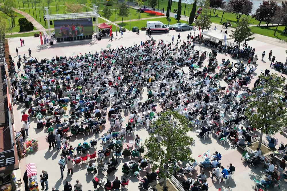 Hüdavendigar Kent Parkı ve Kültürpark Atatürk Stadyumu girişinde kurulan dev ekranlarda şampiyonluk maçını izleyen on binlerce Bursalı, Bursaspor’un 5-1 kazandığı maçın bitiş düdüğüyle birlikte alanı bayram yerine çevirdi. Hem galibiyet hem de şampiyonluk coşkusunu yaşayan Bursalılar, organizasyon için Büyükşehir Belediyesi’ne teşekkür etti.