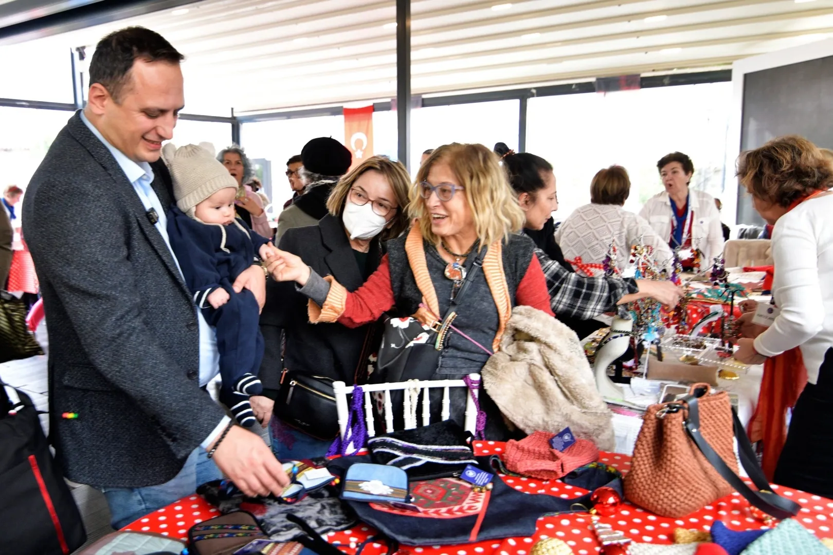 Etkinliğe eşi Beste Eşki ve oğlu Noyan Volkan ile katılan Başkan Eşki, yılbaşı hediyelerini de kermesten satın alarak dayanışmaya katkı sundu.