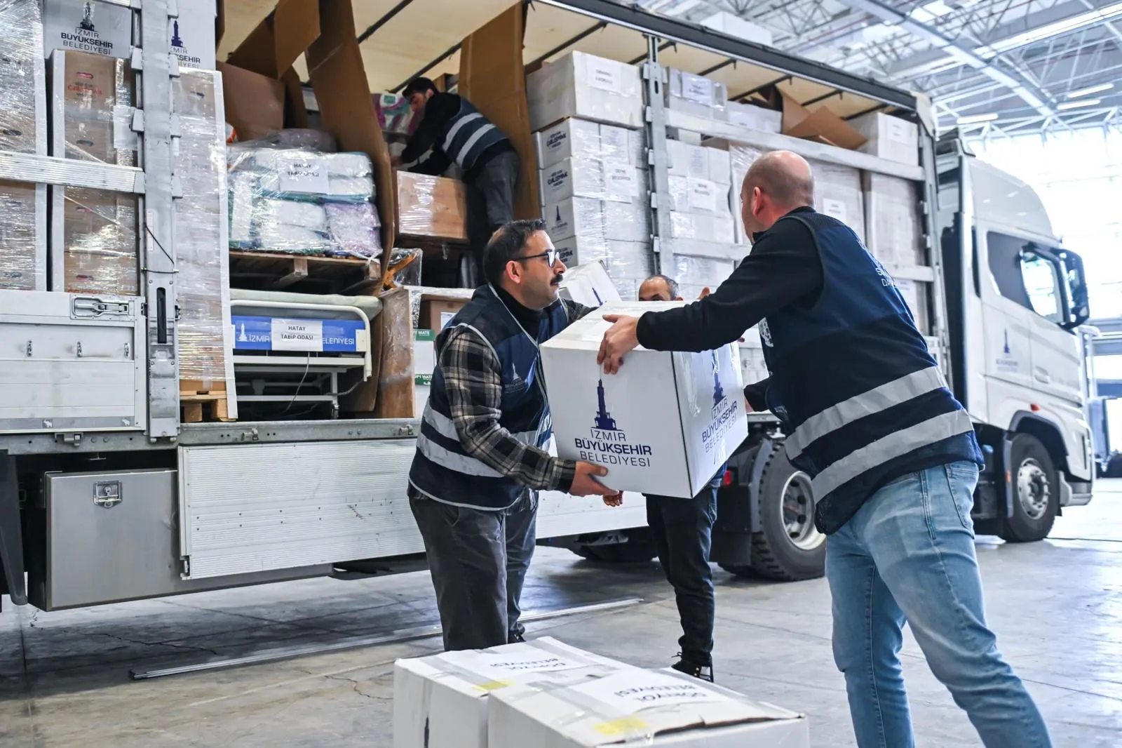 6 Şubat depremlerinin üçüncü yılında İzmir Büyükşehir Belediyesi, Hatay’ı yalnız bırakmadı. “Unutmadık Yalnız Bırakmıyoruz’ mesajını Hatay halkına iletmek üzere harekete geçilirken, ayni destek malzemeleri bir TIR, iki kamyon ve iki panelvan araca yüklenerek Fuar İzmir’den yola çıktı.