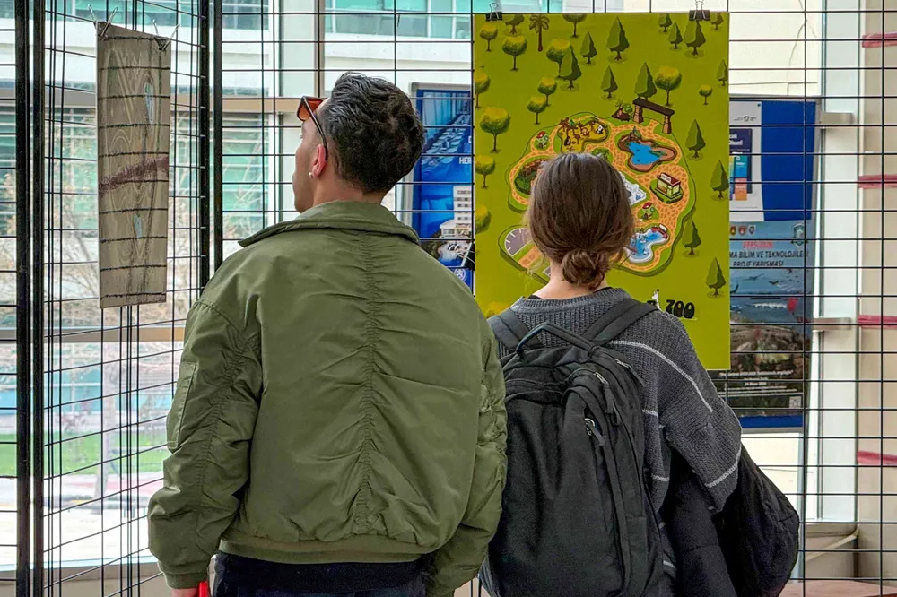 Serginin açılış konuşmasını yapan Grafik Tasarımı Bölüm Başkan Yardımcısı Dr. Öğr. Üyesi Mehmet Işık; “Grafik Tasarımı Bölümü 3. sınıf öğrencilerimizle birlikte, görsel anlatım teknikleri dersi kapsamında tematik alanların görselleştirmesine yönelik hayvanat bahçesi projesini gerçekleştirdik. Ders içerisinde bilgilendirme, yönlendirme ve tematik alanların görselleştirilmesini öğrencilerimizle özgün bir şekilde tasarladık. Öğrencilerimizden ilk olarak alan oluşturmalarını ve bu alanların genel yapılarını eskizlerle çalışmalarını istedik. Daha sonra, yapmış oldukları eskizler üzerinden hayvanat bahçesi içerisinde yer alan bölümleri belirledik ve bu bölümlerde hangi hayvanların olması gerektiğine dair genel bilgilendirmeler ile projeleri oluşturduk. Sergide, 22 öğrencimizin projesi yer alıyor. Verimli geçen derslerin ardından hayata geçirdiğimiz projelerin ilham verici olacağını düşünüyorum” dedi.