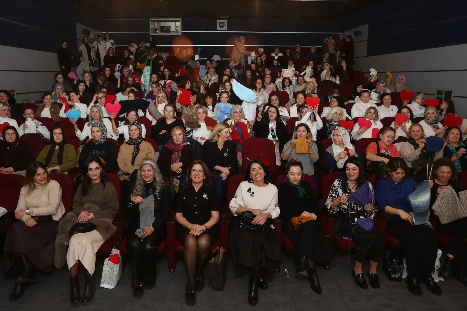 Nilüfer Belediyesi ve Elif Sanat Kültür ve Kadın Dayanışma Derneği iş birliğiyle gerçekleştirilen “Kalpten İlmekler İyilik Perdesinde” projesinde yaklaşık 200 kadın sinema salonunda hem film izledi hem de Harmancık’taki ihtiyaç sahibi çocuklar için atkı, bere ve yastık ördü.