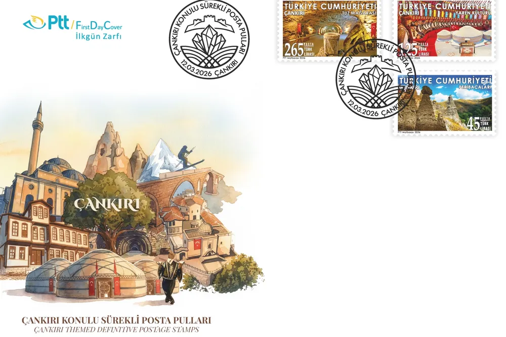 PTT AŞ, “Çankırı” konulu sürekli posta pulları ve ilkgün zarfı 12 Mart 2026 tarihinde tedavüle sunuldu.